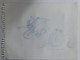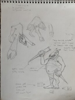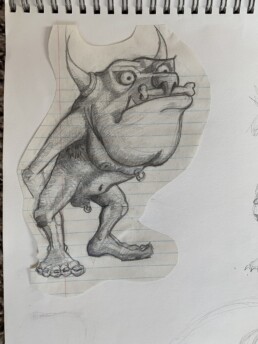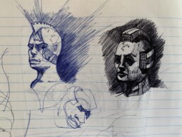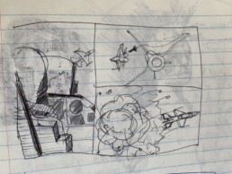 Conceptualizations, character design, and meeting doodles.